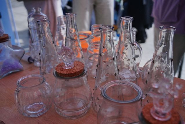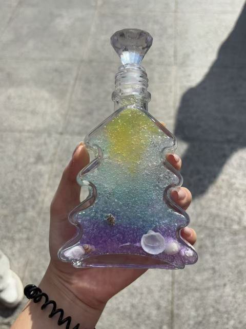 “瓶中寄情”区域则涌动着别样的温馨。一份手作的专注感扑面而来。学子们于指尖流转间,耐心将饱满的水宝宝、莹润的贝壳与闪光亮片精心布局,构筑属于自己的瓶中微缩景观。随着作品的逐渐成型,内心的情绪也得以梳理和安放。这些瓶中封存的,不仅是错落有致的景致,更是此刻被定格的宁静与心意。
