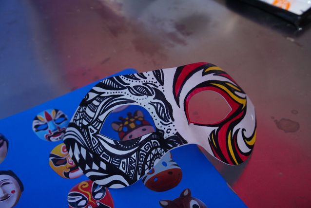 画笔流转,色彩交织。在“面具绘心”区域,师生们或凝神构思,或挥笔创作,将内心深处难以言表的情绪,无论是喜悦、憧憬还是释然,转化为面具上独具匠心的图案与浓淡相宜的色彩。在这场专注而自由的表达中,大家逐渐卸下疲惫,释放压力,实现了心灵与艺术的深度对话。