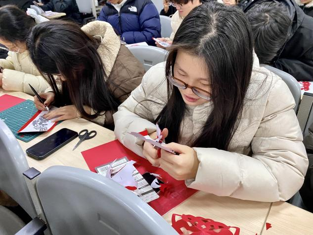 红纸铺展,剪刀翻飞,一纸一世界的东方美学在校园中悄然绽放。12月4日下午,“指尖非遗,剪韵金陵”非遗体验活动在C南201教室顺利举办。本次活动以金陵剪纸这一国家级非物质文化遗产为核心,通过经验分享、技艺实操与作品交流,让师生们在沉浸式体验中,触摸传统剪纸的温度,感受金陵文化的深厚底蕴。