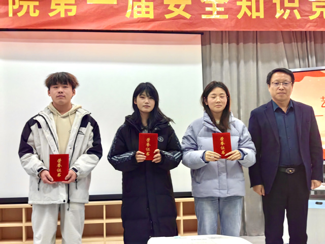 比赛现场气氛热烈,必答题环节选手们沉着应答,抢答题环节大家反应敏捷、争先抢答,风险题环节各队果断抉择、大胆挑战,台下掌声不断。最终,6支队伍分获一、二、三等奖。艺术学院党总支书记庄怀军为获奖队伍颁奖并讲话,他强调安全是校园发展和师生幸福的保障,希望以此次竞赛为契机,让“人人学安全、懂安全、守安全、护安全”的氛围愈发浓厚,共同筑牢校园安全防线。