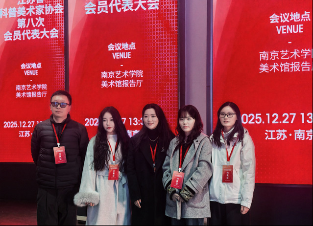2025年12月27日下午,江苏省科普美术家协会第八次会员代表大会在南京艺术学院美术馆报告厅召开。来自全省科普美术及相关领域的近200名会员代表参加会议,共商协会发展,共绘科普事业新蓝图。我校艺术设计学院院长助理张文婷,艺术与科技教研室副主任刘聪,视觉传达设计专业教师衣晓东、数字媒体艺术专业教师陈天星、邵琛寓等五位教师作为会员代表受邀参会。