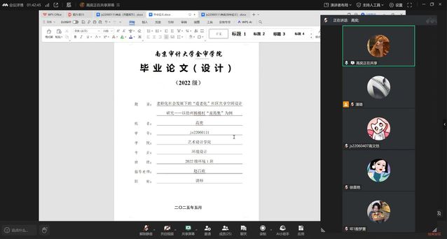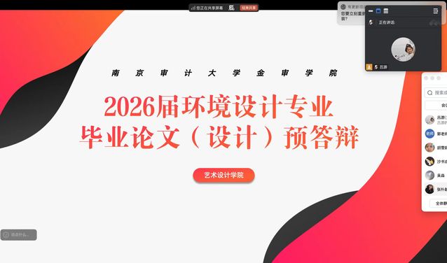 2026年1月14日环境设计专业2026届本科毕业生毕业论文(设计)预答辩工作顺利以线上形式完成。本届共142名毕业生与15名专业答辩教师跨越空间阻隔,相聚云端,通过精心组织的6个平行答辩小组,圆满完成了这场别开生面的学术“预演”。