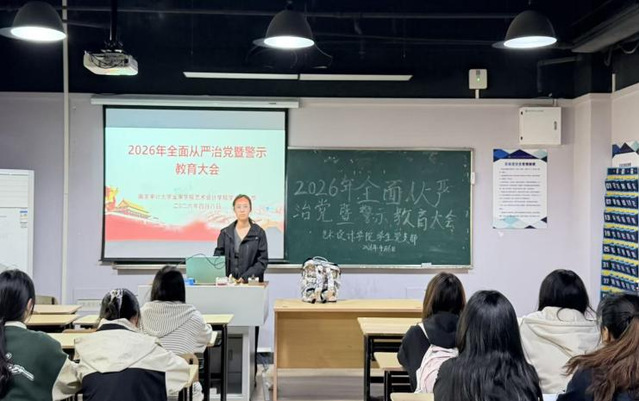 为深入学习贯彻习近平总书记在二十届中央纪委五次全会上的重要讲话精神,全面落实学校2026年全面从严治党工作会议部署,教育引导学生党员筑牢思想防线、严守纪律规矩,4月8日下午,艺术设计学院学生党支部召开2026年全面从严治党暨警示教育大会。会议以“警钟长鸣守初心 从严治党砺青春”为主题,通过观看警示教育片、分组讨论交流、总结教育三个环节,为学生党员上了一堂深刻的党性教育课和纪律警示课。